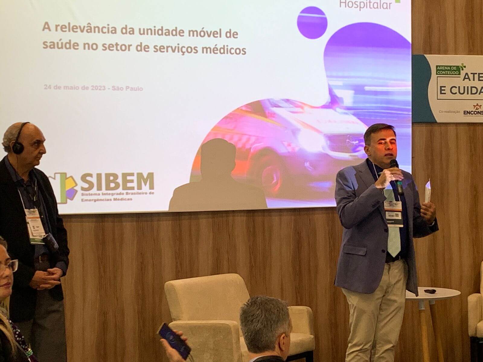 No dia 24 de maio, o Sibem marcou presença na 28ª Feria Hospitalar com a apresentação da palestra A relevância da unidade móvel de saúde no setor de serviços médicos, ministrada pelo médico Sergio Candio durante o Congresso de Atenção Domiciliar e Cuidados de Transição. Um salão repleto de profissionais de saúde dos diversos segmentos pôde refletir e aprofundar o conhecimento sobre a importância da unidade móvel em nosso país.